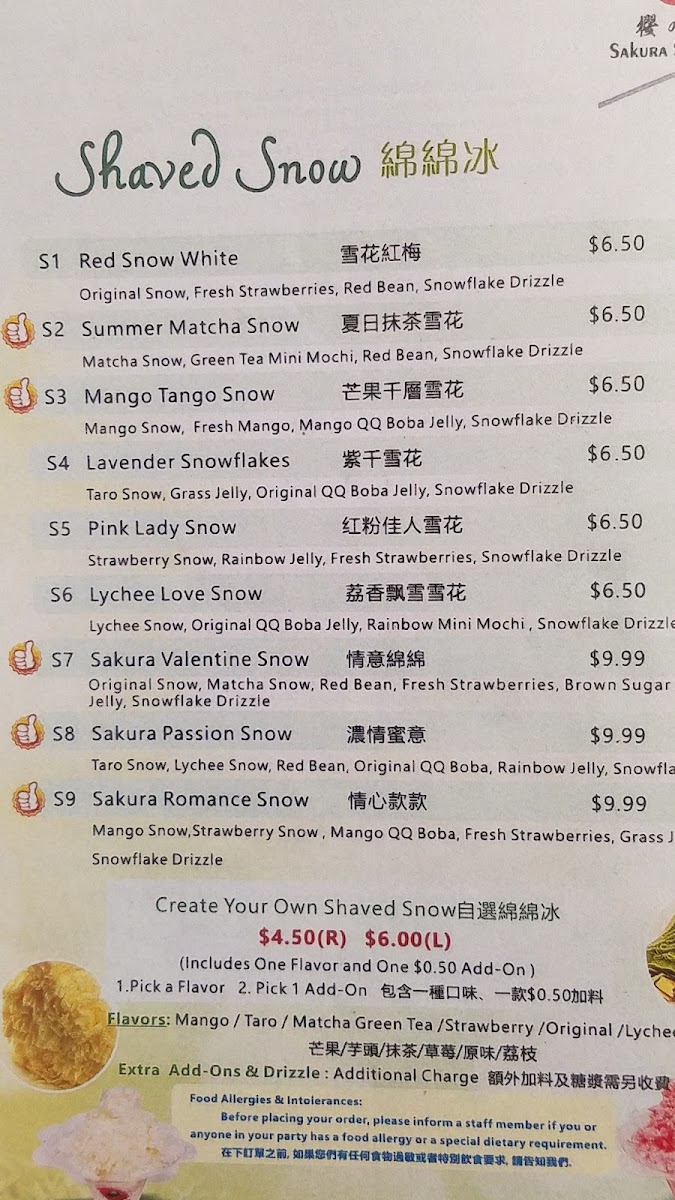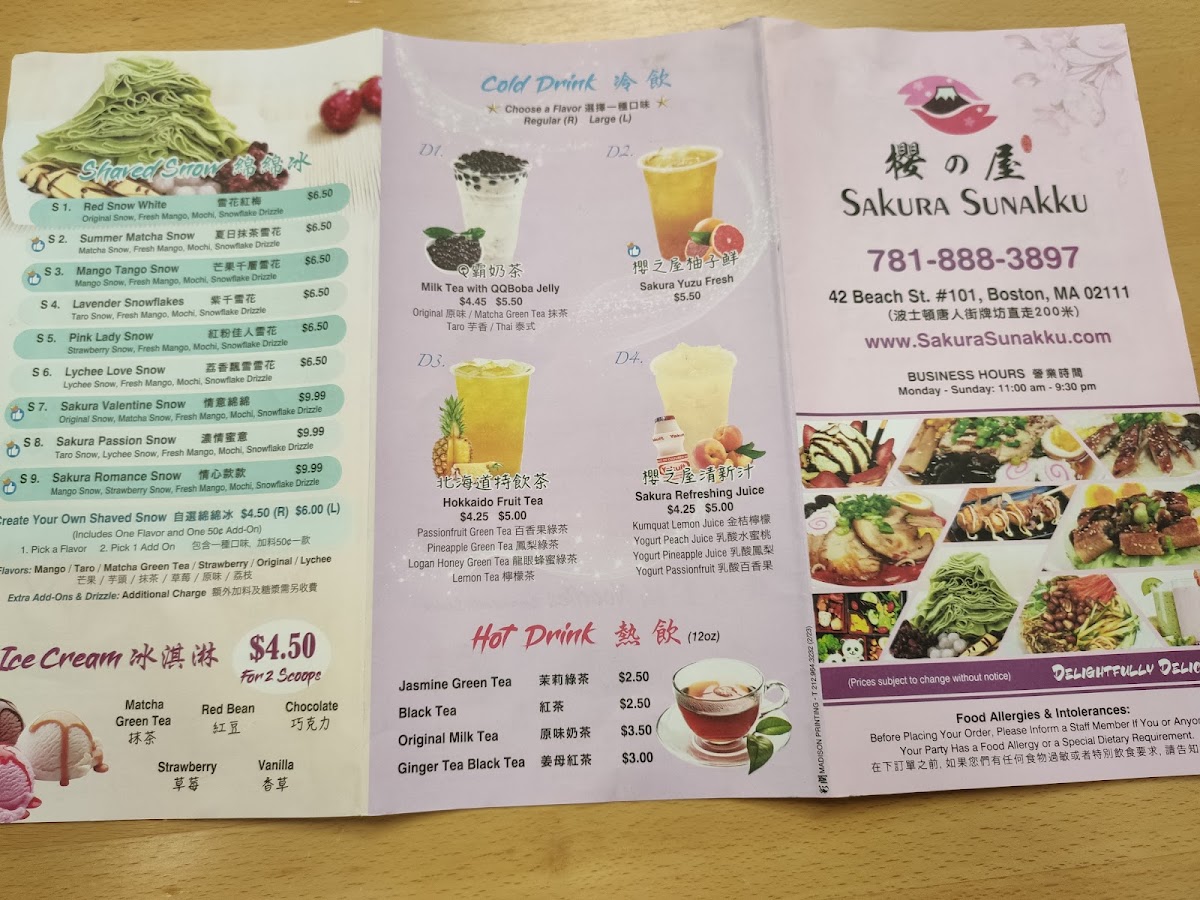 Sakura Sunakku Menu