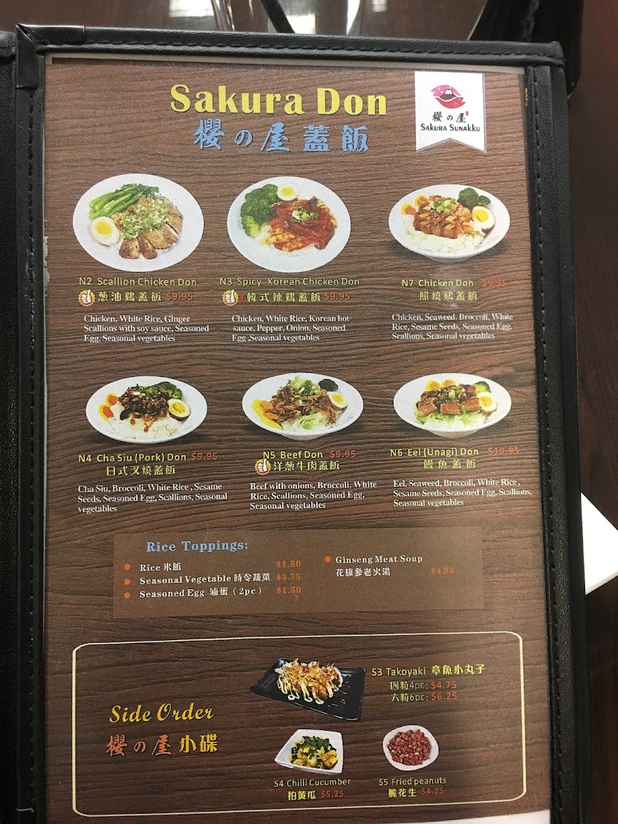 The menu at Sakura Sunakku offers a straightforward and inviting selection of Asian fusion dishes with a strong Japanese influence, perfect for those looking for casual, comforting meals throughout the day. Whether you’re stopping by for a warm bowl of ramen during lunch or dinner, or something lighter like bento boxes for a simple yet satisfying meal, the menu strikes a balance between familiar flavors and thoughtful touches.