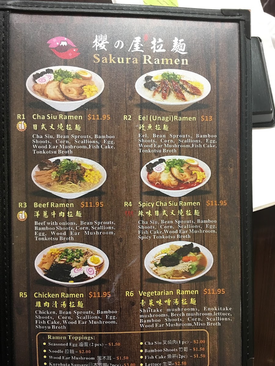 Typical highlights include hearty options like the Sakura Ramen, featuring varieties such as Cha Siu and Eel Unagi, which offer a rich and warming experience especially appreciated on cooler days. The bento boxes provide convenient, well-rounded meals that fit well with the restaurant’s cozy and intimate atmosphere, making them a good choice for a quick, casual bite that still feels thoughtfully prepared.